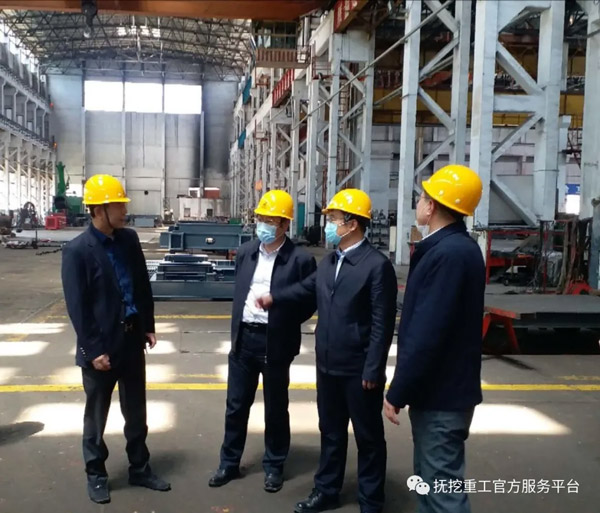 5月13日上午,撫順市市長(zhǎng)高鍵帶領(lǐng)順城區(qū)區(qū)長(zhǎng)王景濤及市金融辦、市統(tǒng)計(jì)局、市社保局、市工信局等相關(guān)部門負(fù)責(zé)人來(lái)到撫挖重工進(jìn)行視察調(diào)研。撫挖重工董事長(zhǎng)徐楗元帶領(lǐng)公司管理人員接待了高鍵市長(zhǎng)一行。